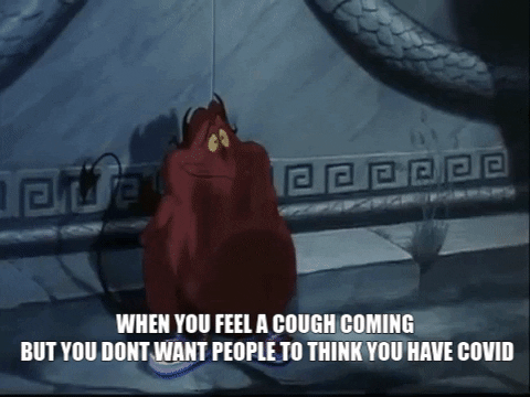 I relate to this GIF that a classmate had created. Since news of the virus, I’m always careful of when I sneeze and cough because people might think I have the virus. Also because of the racially driven crimes towards Asians, I am afraid of what would happen if someone misunderstood me and did something unpredictable. I try to hold the coughs and sneezes in, and thankfully no misunderstandings have occurred. It’s funny that people try to hold them in because of what others will think once they do sneeze or cough.