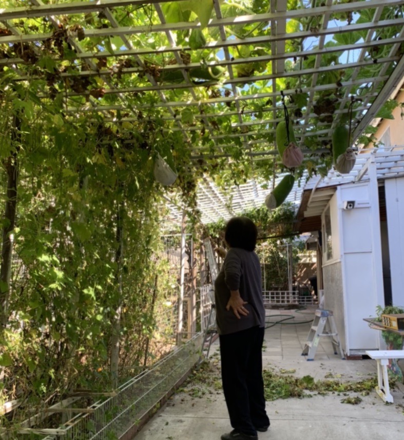 The pear shaped pod delicately hung onto the tree, as the hot sun beared down, my grandma plucked the fragile fruit off the branch, tossing it down into the sewn bag I held up. The tree, nurtured by my grandparents, was strong with thick roots entrenched in the fertile soil. The tree hid in a forest of green, confined only to the backyard, with dots of light pink flowers swaying with the leaves. Winter Melon resting on the pillars above my head, and string beans dancing on vines across the fence.