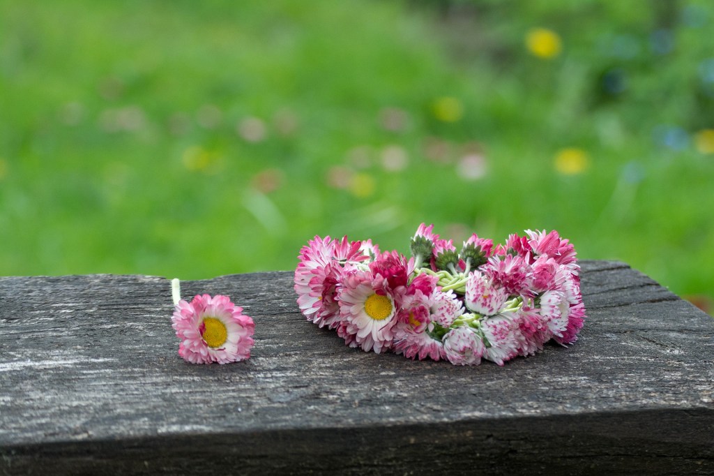 When the grass grew in abundance and flowers bloomed in droves around her and the sun would be golden and the grass would sway, smelling like warm winds, she liked to sit out in the fields and make flower crowns.