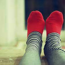 My eyes turn downwards and towards his shoes, red socks. “Okay, sorry.”