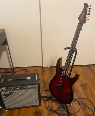To the right of my seat is where I can access my most favorite hobby of all time, playing my guitar. Having my guitar right next to where I study is not only convenient but motivating, as it is like a reward for me when I get some work done. The guitar is something that I use to pour all my love for music into and is my favorite way of spending time alone. There are no rules to it and I can learn riffs and solos from my favorite bands, which gives me a great sense of accomplishment and is one of the most satisfying feelings ever. The fact that it is right next to me also allows me to get right back to where I was before I picked it up, increasing the effectiveness of my workspace.