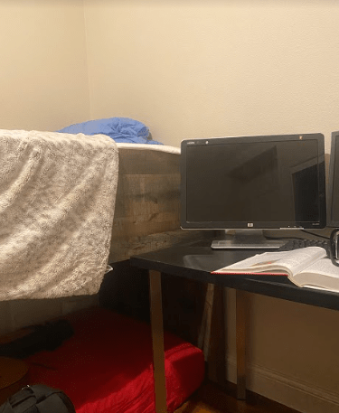 Finally, to the left of my seat, is my bunk bed which is substantial for two reasons. The first reason that having a bunk bed is so great is because the elevation prevents me from hopping on to my bed after school, whereas having a bed on the ground tempt me into taking a nap on it. Despite this and all of my other points I have made, my homework will still stretch into the weekends, which is where the genius of the location of my bed comes into play. Because my bed is is literally right next to my desk, I can just hop off my bed when waking up and be ready to do homework/study early in the morning so I can spend the rest of my weekend freely.