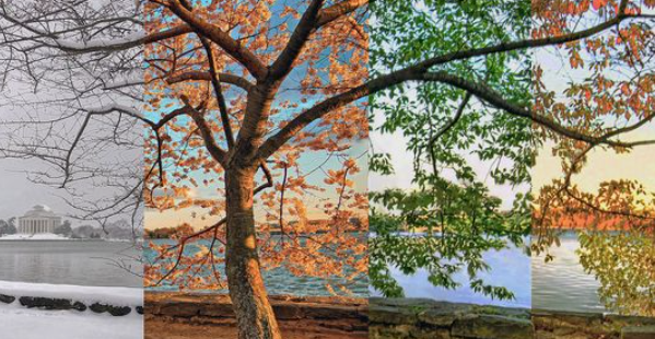 During fall, there are warm, brown colors in trees, clothes, and candles.