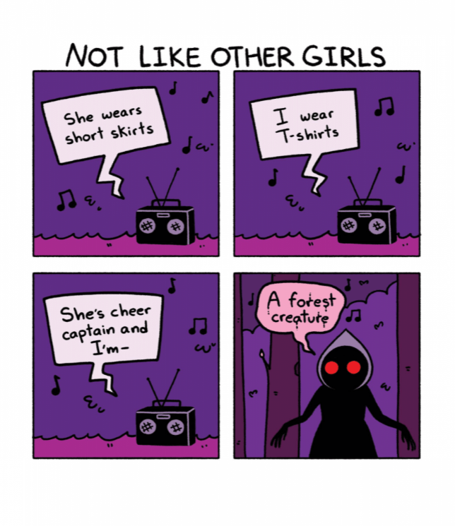 Cryptid Club will only take you about 20 minutes to read but the joy and amusement it offers is well worth the price of your time. It contains countless little one page comic narratives, or insights to the world of the cryptids. But these little scenes tie into popular culture and modern facts of reality. The characters repeat throughout the novel and I’ve come to smile every time I see one of my favorites appear on the pages. Cryptids are creatures that are typically feared in most fiction, (examples being, bigfoot, the loch ness monster, and the kraken) and seeing them in a humorous light has a very endearing and comforting effect. It’s almost as if by smiling at their silly antics, a childhood fear is being conquered. And don’t we all want to leave behind what has plagued us in the past and replace it with something that makes us smile?