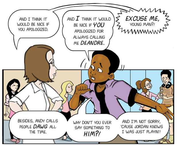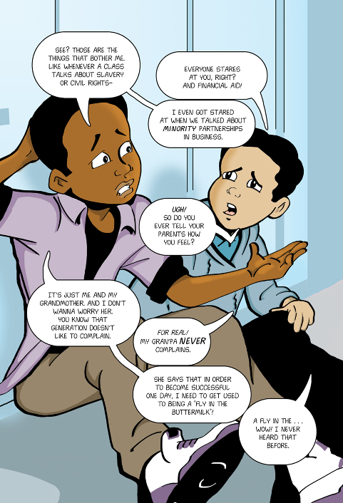 Pathos: Throughout the novel, you can see that the main character, Jordan Banks, struggles with fitting in and adapting in his new school but also struggles to connect with his old friends around his neighborhood. Jordan spends his time drawing to spend time and wishes to be in an art school but his parents enroll him in a private school that has advanced classes. With him being enrolled in this private school unwillingly, he tries to progress through it but the racism there makes it hard for him to. And to make matters worse, his old friends think he is turning into a stuck-up rich boy. The novel tackles racism and stereotypes and shows how ignorant words can have a big impact. Little things like being called the wrong name simply because you are the same race as said person. It may not seem like a big deal but we can see from the novel that it makes them feel like they’re not special and just another colored person in class. When you read this novel, you can see how ignorance is not bliss.