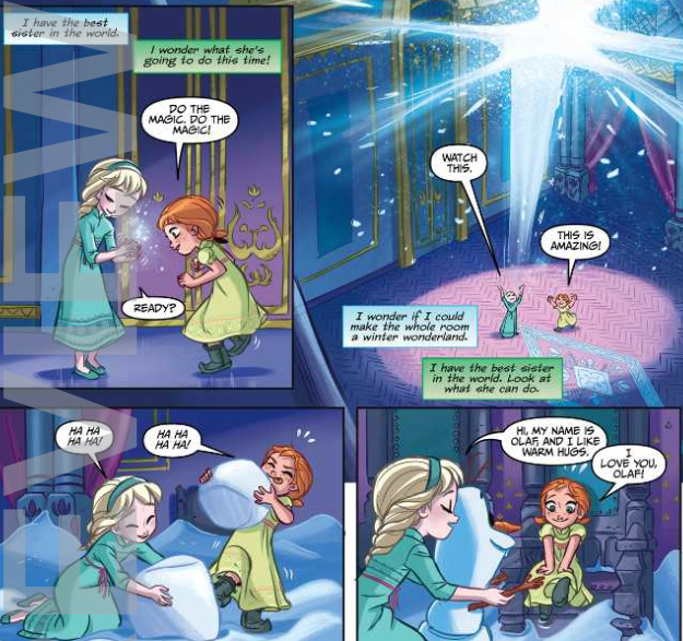 Ethos: Frozen is one of the most popular movies. The movie Frozen has earned around 1.282 billion dollars with a 90% rotten tomato rating, which is incredibly good. So many age groups have watched this movie, all my friends and all the parents I know have watched Frozen at least once. Frozen has become so popular that it has many high reviews from well-known publishing companies like New York Times or USA Today. Being featured in either one of these magazine companies is a huge deal and adds tons of publicity. Walking into the Disney store, you’ll notice that a majority of the merchandise available is Frozen themed and can be expected to be sold out in less than a day. Based on the amounts of amazing reviews this would convince anyone to read the graphic novel.
