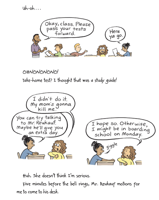 Has there ever been a time when you wanted to be someone else, or to be seen for more than what you’re known for? The two main characters in the graphic novel, Positively Izzy, are Brianna and Izzy. They go to Lakefront middle school and it centers on a half day where there is a talent show in the evening. Izzy is known for not focusing in class and always daydreaming. She is interested in arts and crafts and is hyped for participating in the talent show. However, she wants to do better and everyone keeps on telling her “Focus.” Brianna on the other hand is known as the “Brain.” People say that she is stiff and not as funny and easygoing as others. Both girls want to grow in these areas. It relates to how as people, we want to become a better person and improve ourselves.