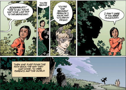 In one of said stories, Nobody, adopted by the dead Owen’s family, Nobody makes a friend. This friend of his goes on a short adventure with him in the graveyard, which eventually gets her in trouble from her family. She is then forced to stop coming to the graveyard where Nobody lives. Many people may relate to the loss of friends and those close to you due to unforeseen and unchangeable circumstances, but we will see how Nobody continues on despite this.