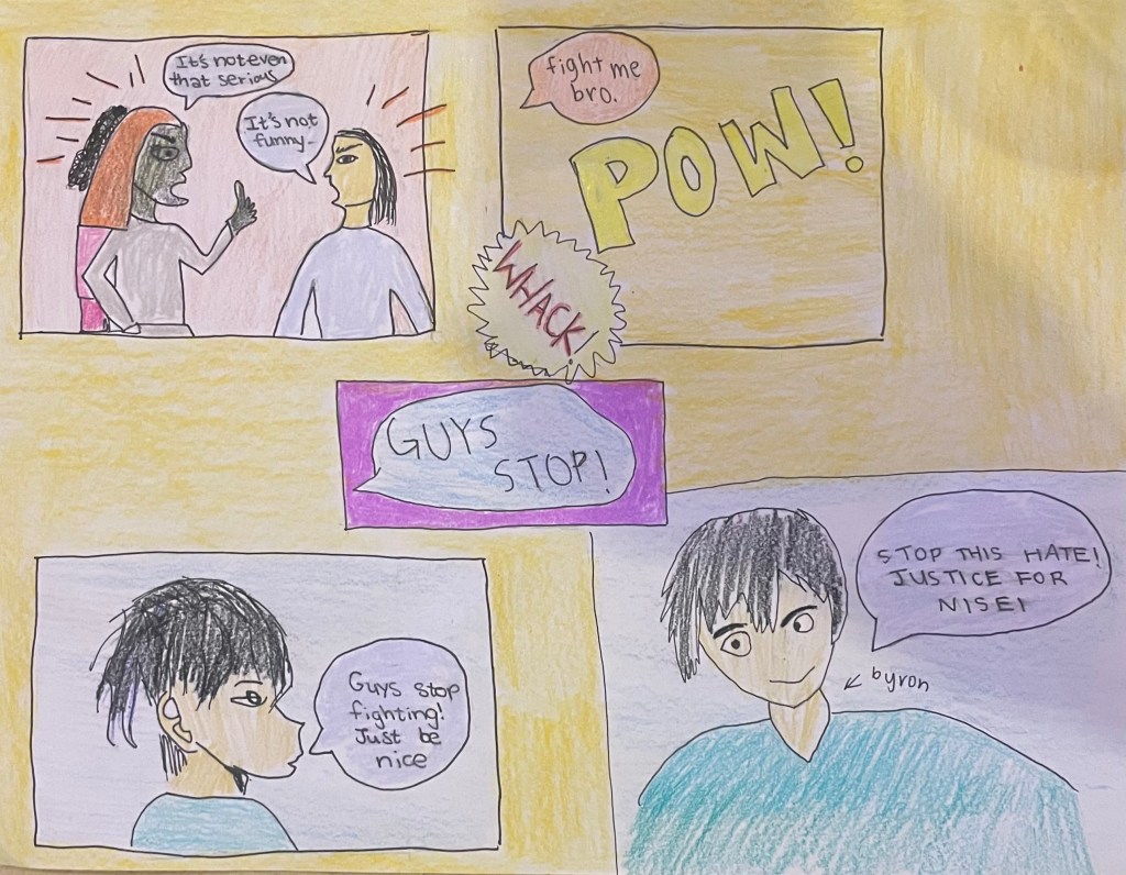 THIS IS A FICTION/HYPOTHETICAL SITUATION, A story about Monica, a Japanese – American Girl, getting bullied by two other girls simply because of her race. When they get into a fight, a boy helps break things up because he feels that it is not fair to be treated differently because of an idiotic stereotype.