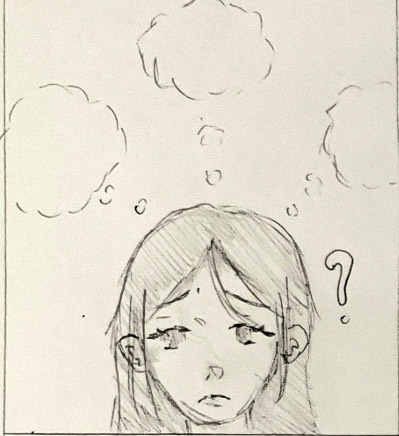 The second image representing thinking and communicating with clarity and precision shows a girl with empty thought bubbles surrounding her with a question mark. I chose to draw this to depict They Called Us Enemy because the characters are continuously met with ultimatums and difficult situations where they need to make a choice to determine the wellbeing of their families.