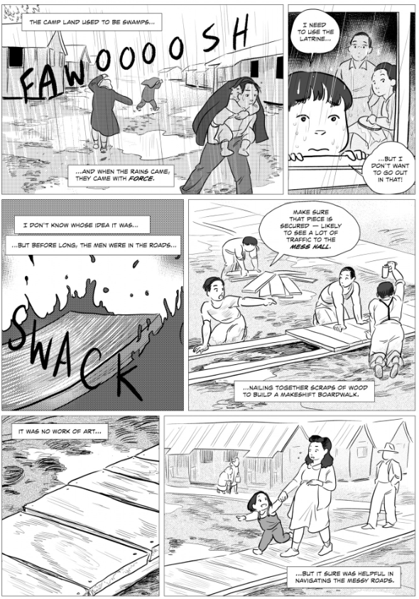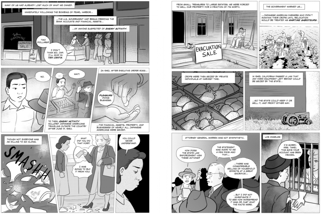 The third image representing applying past knowledge to new situations is a reference to the communitive property in math because it shows how we can use what is given to find out what we can about the unknown. This skill is utilized a lot by the father of the Takei family because he is seen as the head of the family. He takes initiative in trying to improve their community’s living situation. This leads to the responsibility of figuring out the best course of action to take using his experience of living in an internment camp.