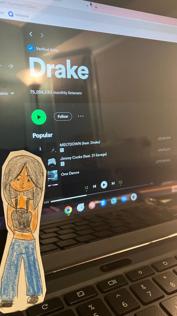 Drake also has a variety of songs that help me understand myself whenever I’m sad. As much as it’s good to always be motivated, it’s also important to sit back and reflect on your emotions in order to move on. Listening to Drake when I’m feeling sad is like talking to myself about what I’m feeling and comforting myself from those feelings. The melody of his music also helps me escape from reality which is good for when there’s too many things happening at once and I need to start by focusing on myself to be able to deal with everything else.