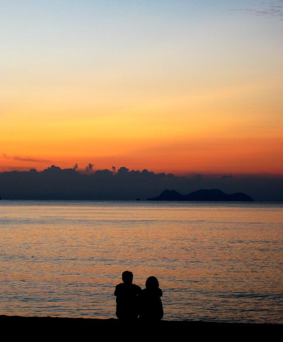 He reluctantly sits down and sighs feeling oddly relaxed as they look up at the sky together.