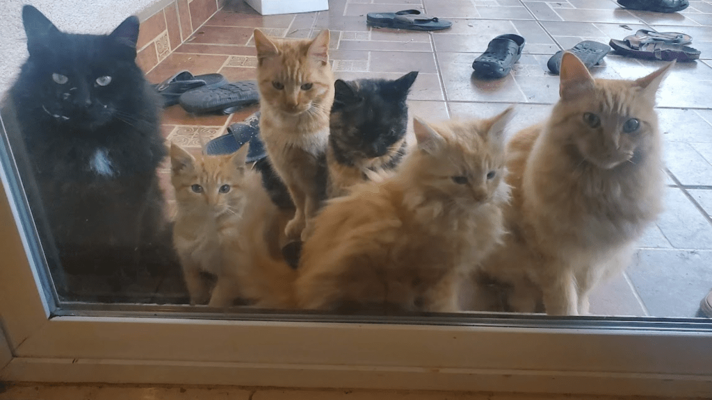 Lots of things changed. The mom cat (that we now call grandma cat) moved to the backyard of a house diagonal to us (traitor), Gingey left and blackie would only come back occasionally. And the smallest sibling– Stink–died on the street–may she rest in peace (her two kitties stayed with us for a while and then left on their own). Only Fluffy and some of her current babies remained (we gave away some of them to people). And that’s where the cat family line ends right now. I will forever hold the memories of each and every cat that made an appearance in my life.