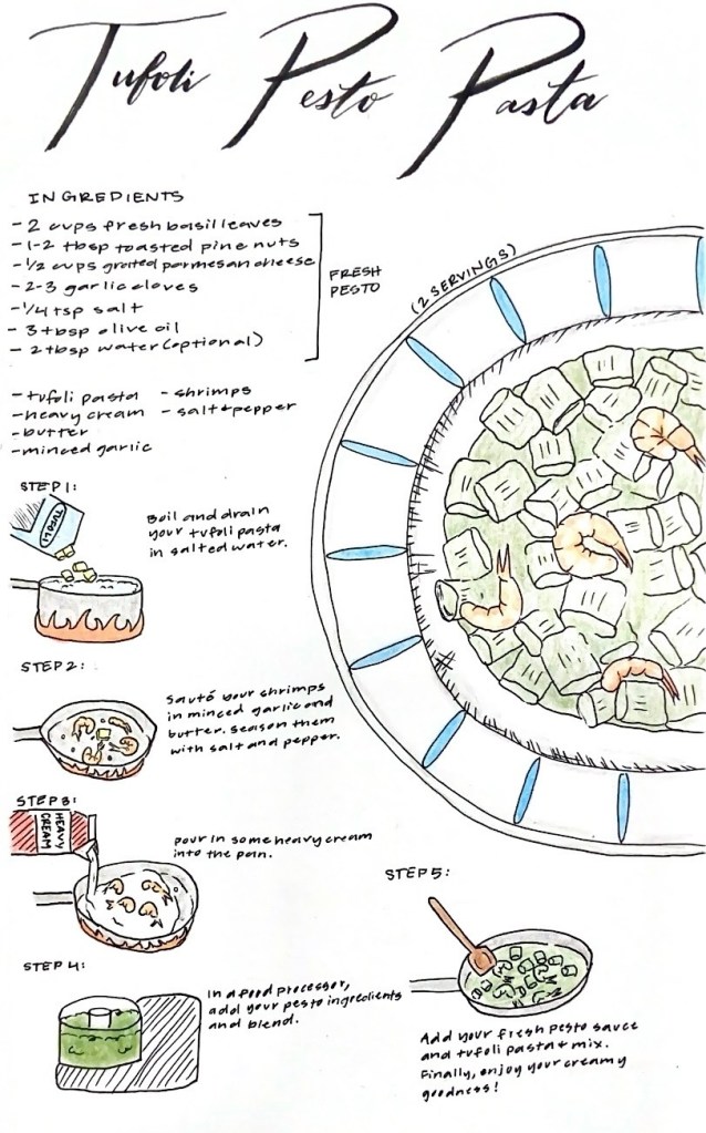 This is an extension to Activity #6. I originally experimented with creating a comic-like food recipe design for an avocado sandwich. The extension onto activity #6 is another comic-like food recipe design of tufoli pesto pasta. Enjoy!