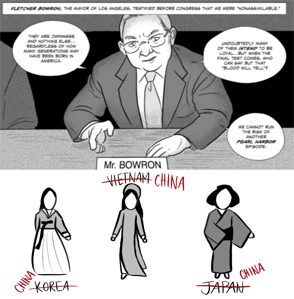 During World War II, Japanese Americans were sent to internment camps for something they had no part in, due to their heritage and blood. Similarly, Asian Americans during the pandemic have been subjected to hate for “being the cause of the Corona Virus” although they lived in America all their life. Sinophobia, or the hate of Chinese people, rose considerably and Asians during this time were grouped together, all considered Chinese so other people could have an excuse to be racist.